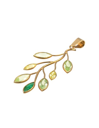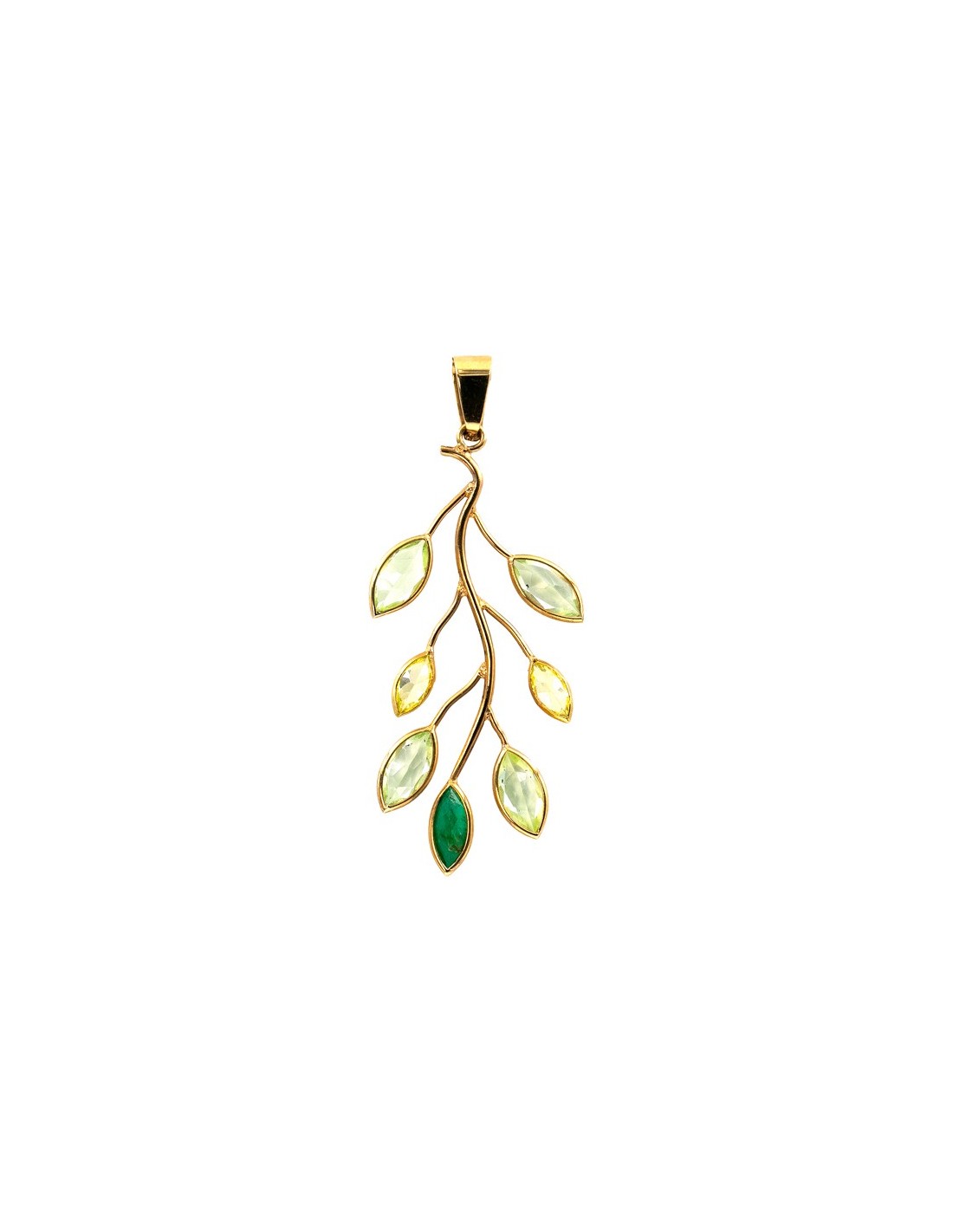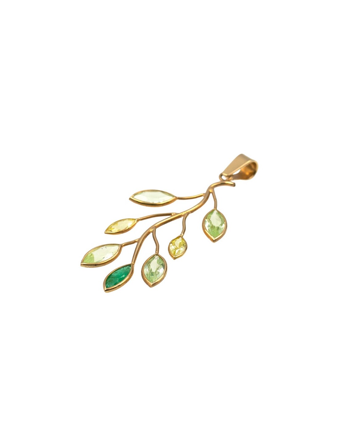 Colgante elaborado de manera artesanal con olivinas en oro amarillo con un peso aprox de 4 gr.