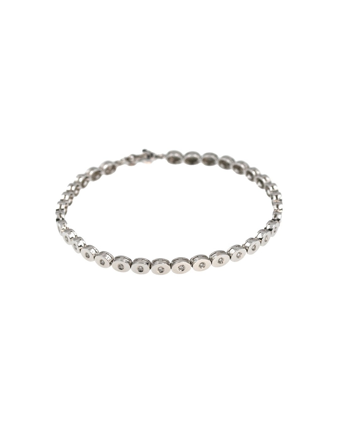 Pulsera de oro blanco con diamantes en talla brillante de unos 33 brillantes con peso total de 0.50 cts. color H y pureza VS-SI. peso total de la pieza 9.22 gr.